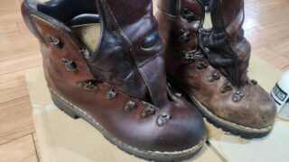 全日本トライアル近畿大会の時に使用した革製登山靴のメンテナンスです。高校時代から約18年間使っていますがまだまだ現役。新しい素材がどんどん出てきて快適で軽量なモデルもありますが、革製品のちょっと不便だけど自分だけのものになっていく感じが好き...