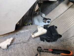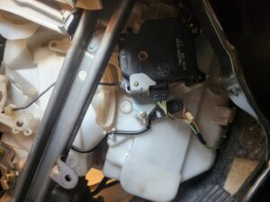 サーモスタット交換して水温が安定したものの暖房の利きが悪いまま。前からキーONにすると足元からモーターの作動音みたいなのがしていてどんどんひどくなってきていました。