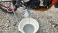ホースを外すと冷却水が出てくるので車体の下で受けます。