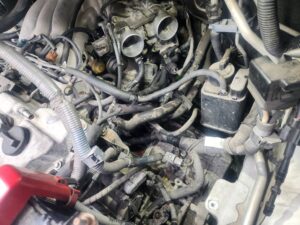 サーモスタットもインテーク取り外さないとアクセスできないのでバラしていきます。