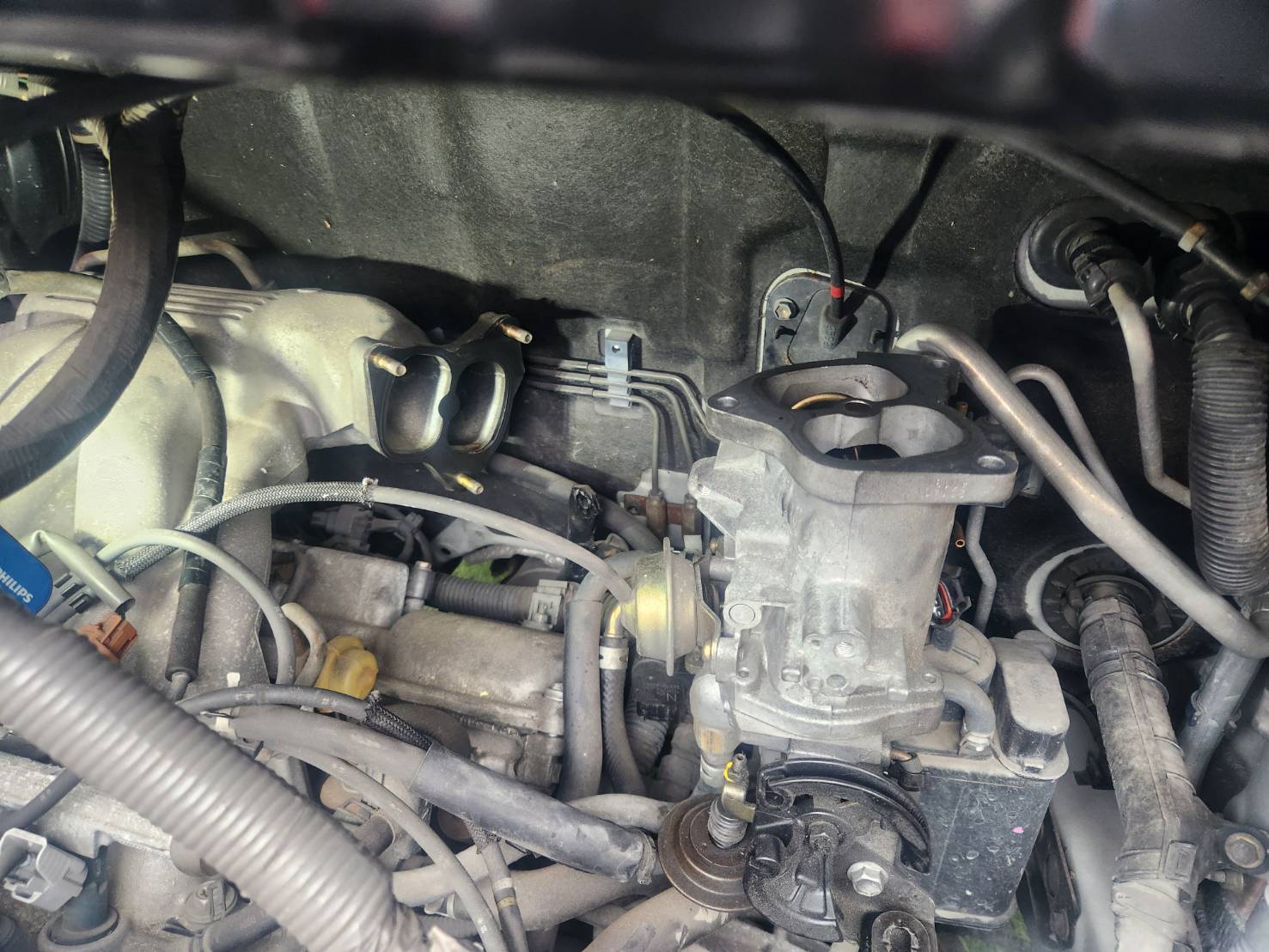ISCVはスロットルボディーの下側にアクセスが必要。