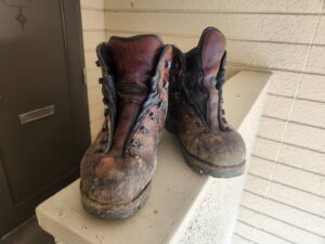 準備は高校時代に購入してもらったオールレザーの登山靴で参加しました。
