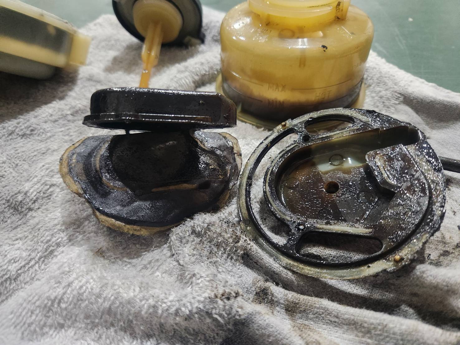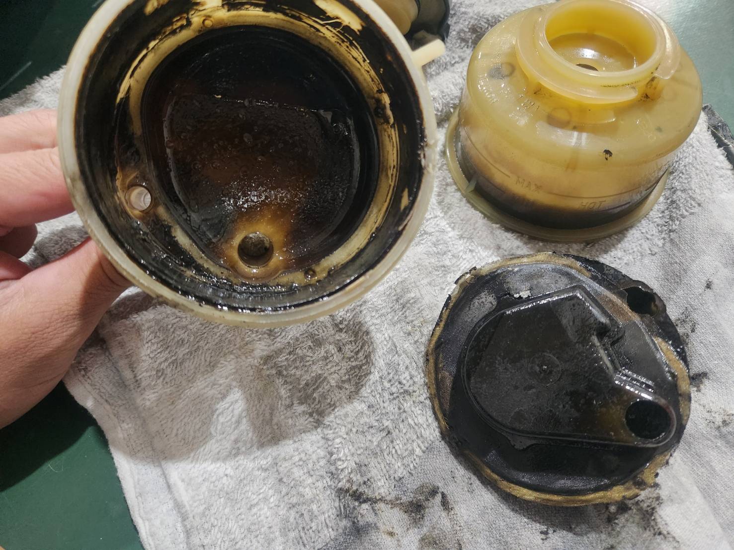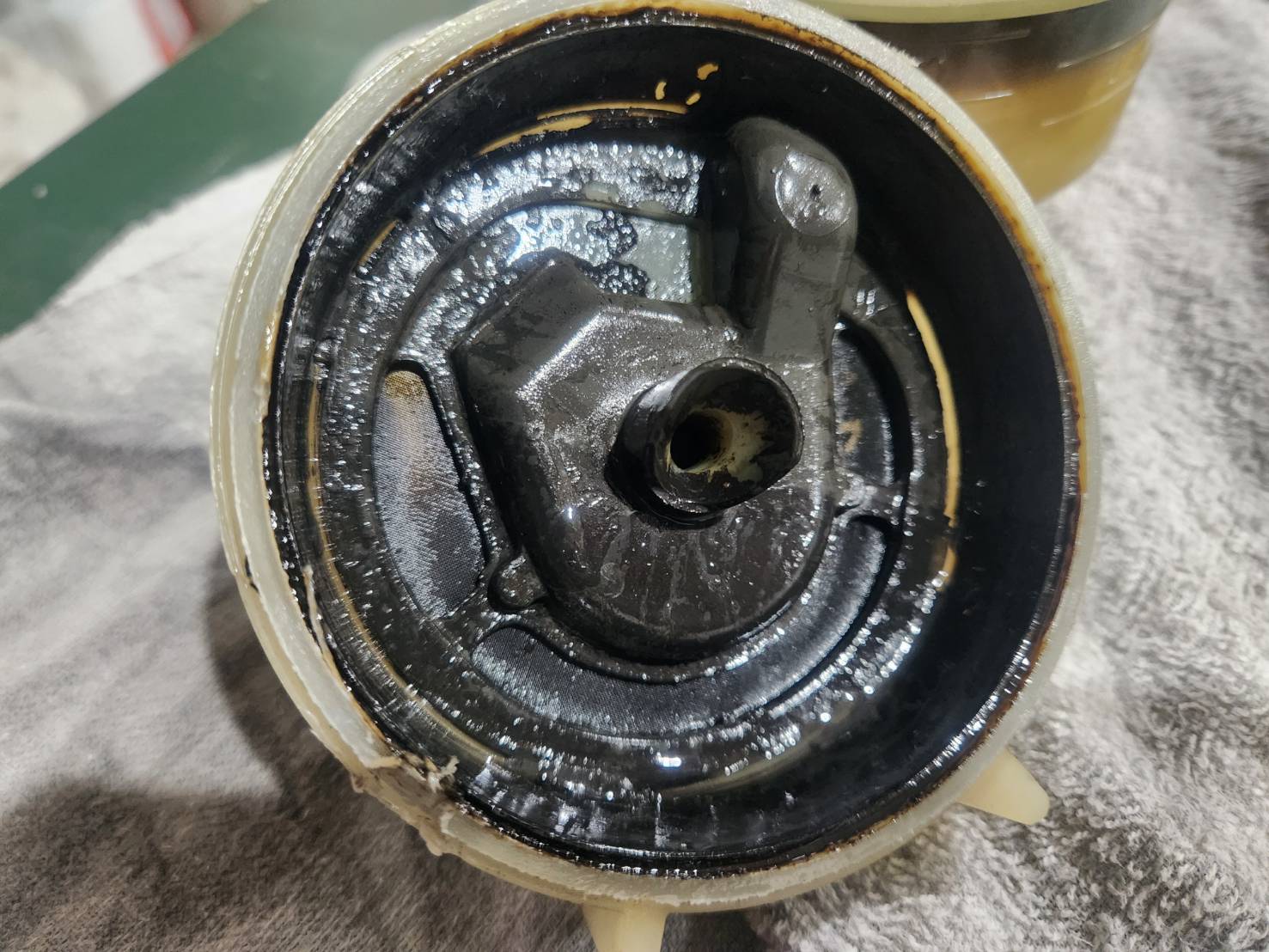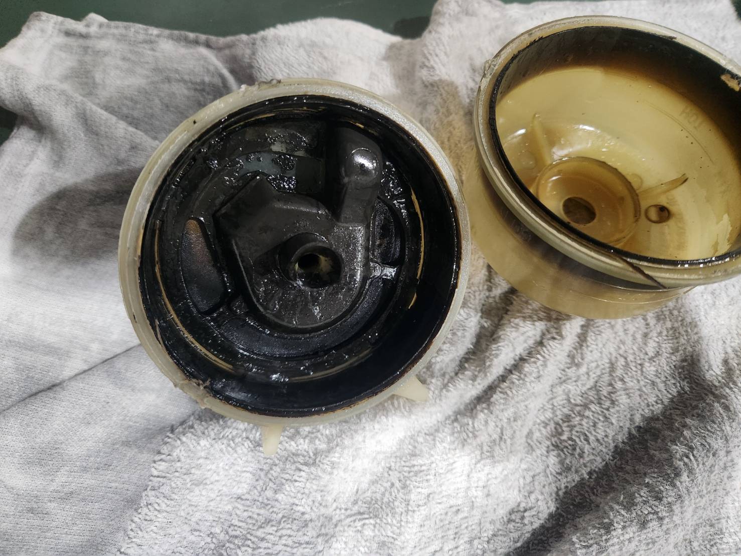 スラッジがこびりついてドロドロです。