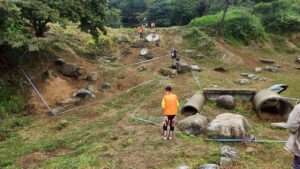 特に3セクションは雨の影響が大きくエスケープするライダーもいましたが、「こんなん無理や!! こんなセクション誰が作ったんや!」と言いつつ、ニコニコしながらトライしてくれるライダーもいて嬉しかったです。