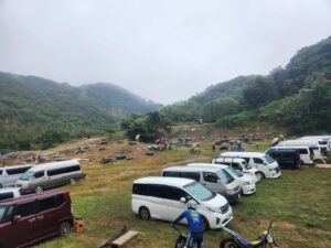 日曜日は天気予報ではくもり、降水確率20~30%程度でしたが受付開始からミーティングまでパラパラと雨が・・・。