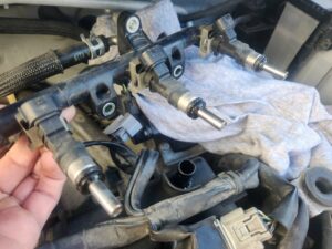 エアクリーナーボックスを外すとインジェクターASSYが見えるのでボルト二本でそのまま外します。